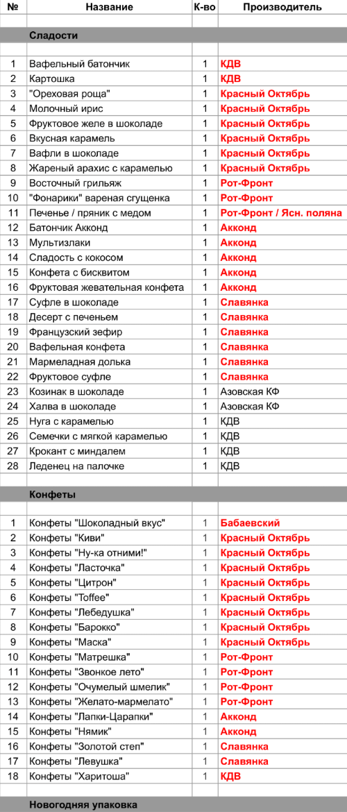 1. Проверить, можно ли внести изменения в состав подарка. Если нет, то скорее всего наборы были собраны еще летом из конфет, произведенных еще раньше