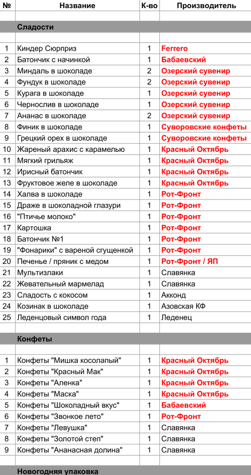 1. Проверить, можно ли внести изменения в состав подарка. Если нет, то скорее всего наборы были собраны еще летом из конфет, произведенных еще раньше